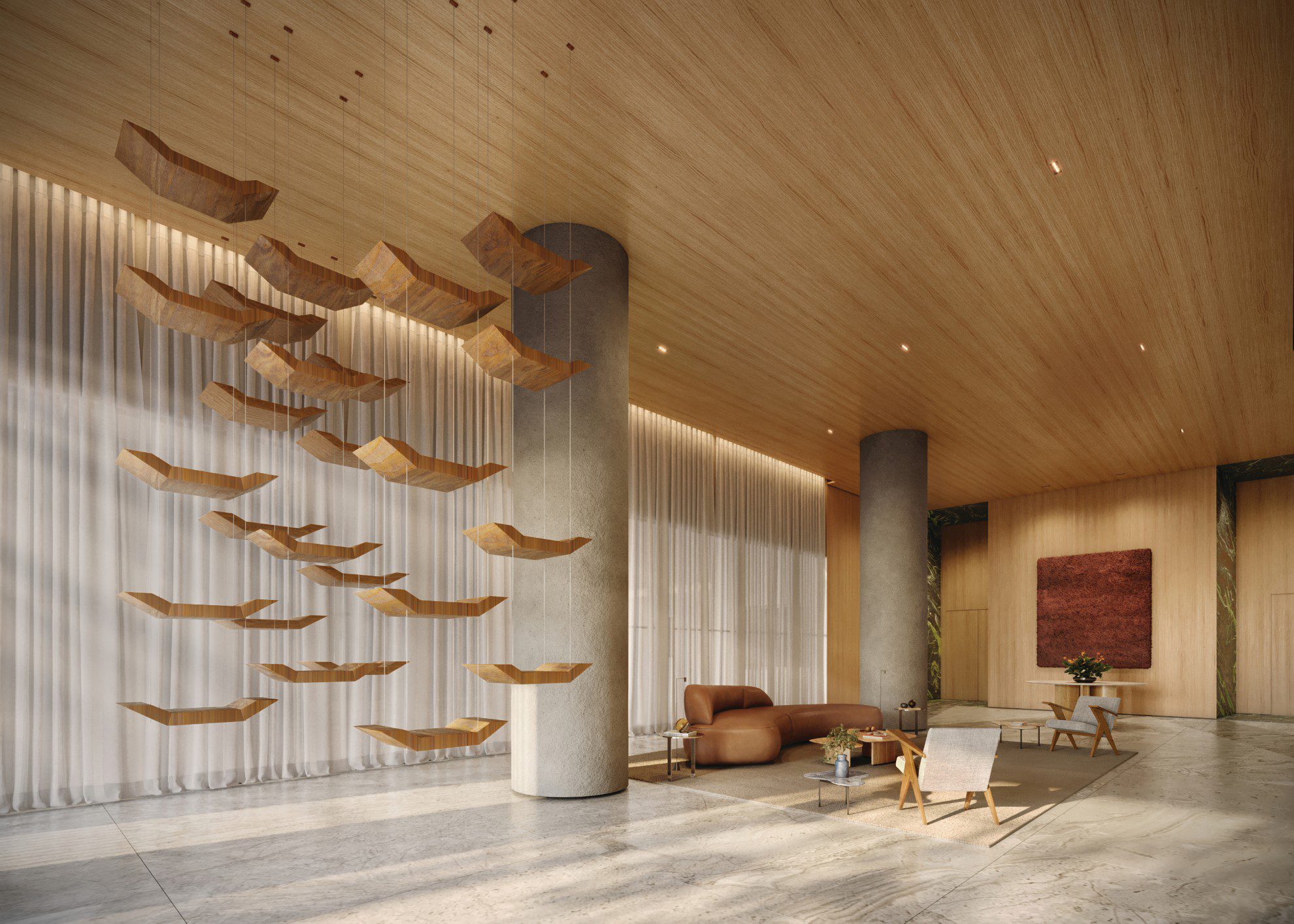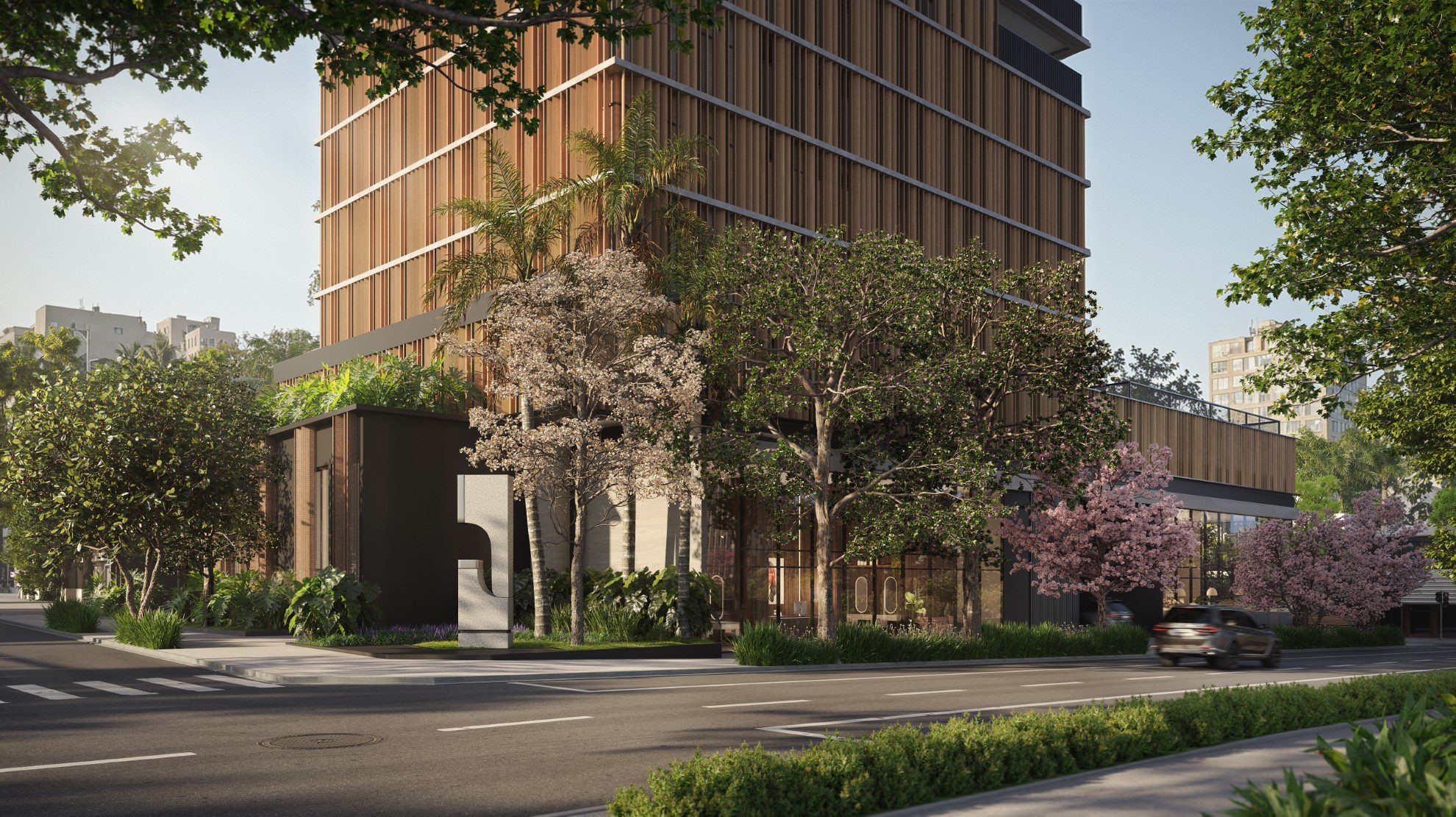 Definir o trabalho de Zanini de Zanine com apenas uma palavra seria limitá-lo. No Autór Jardins, ele assina mais do que as suas premiadas peças de mobiliário – tem papel de curador, trazendo também peças de outros designers. Mas talvez sua principal contribuição seja a escultura, criada para este projeto, que recepciona moradores e visitantes, e transforma a entrada do edifício em um convite para uma exposição ao ar livre.