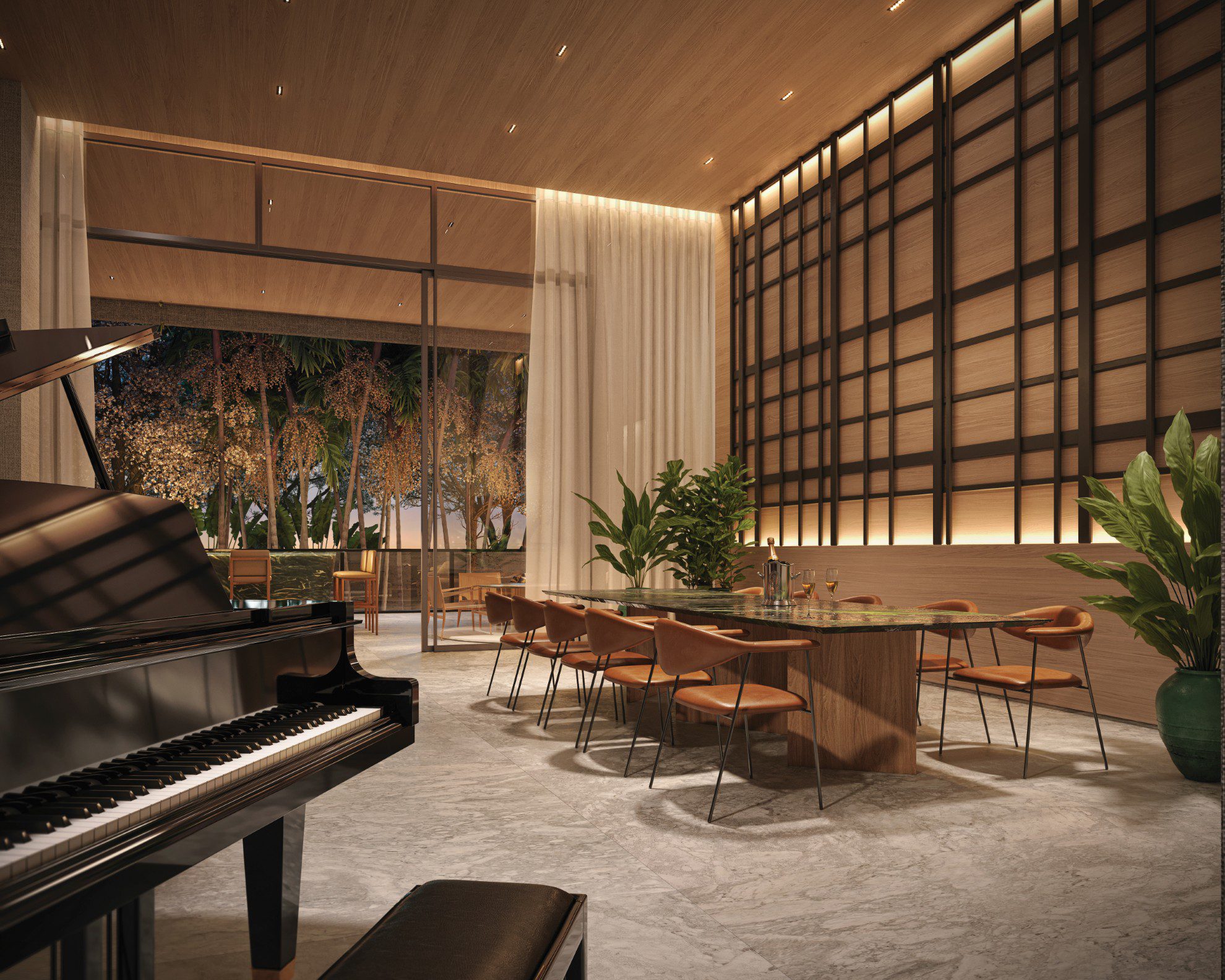 09 Salão de festas com pé-direito duplo e piano de cauda