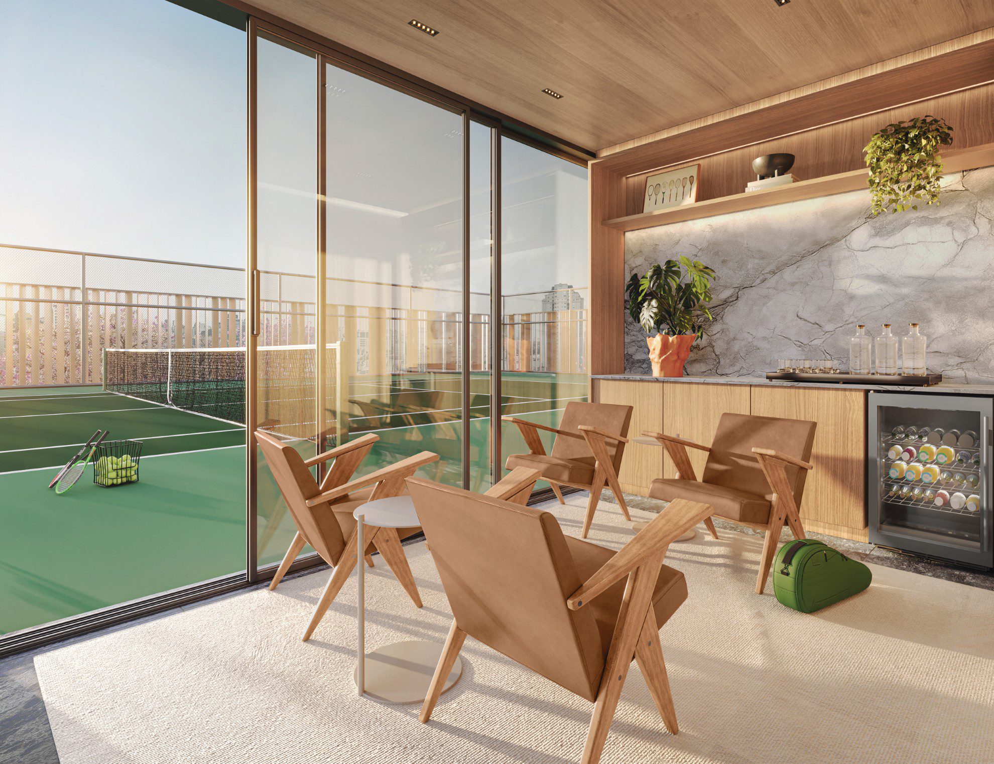 Quadra de tênis oficial com lounge
