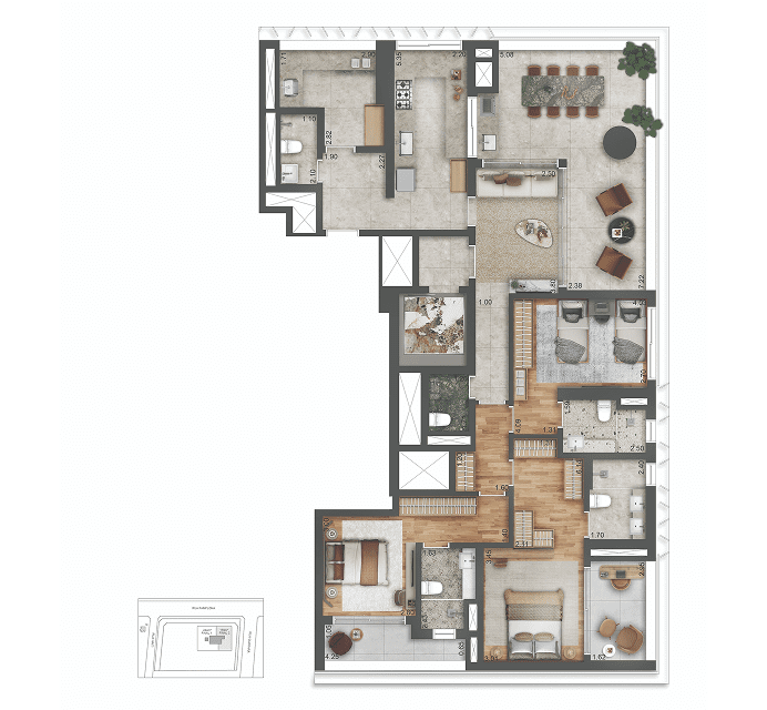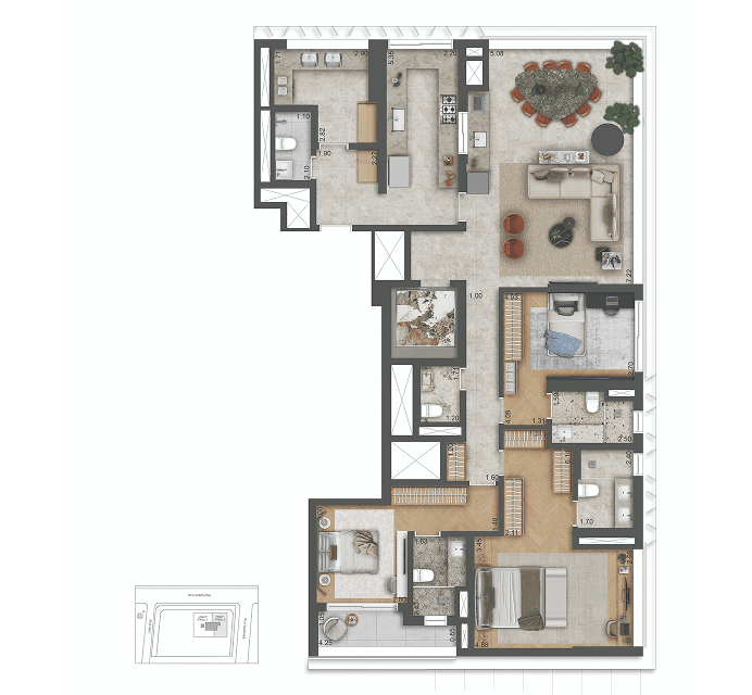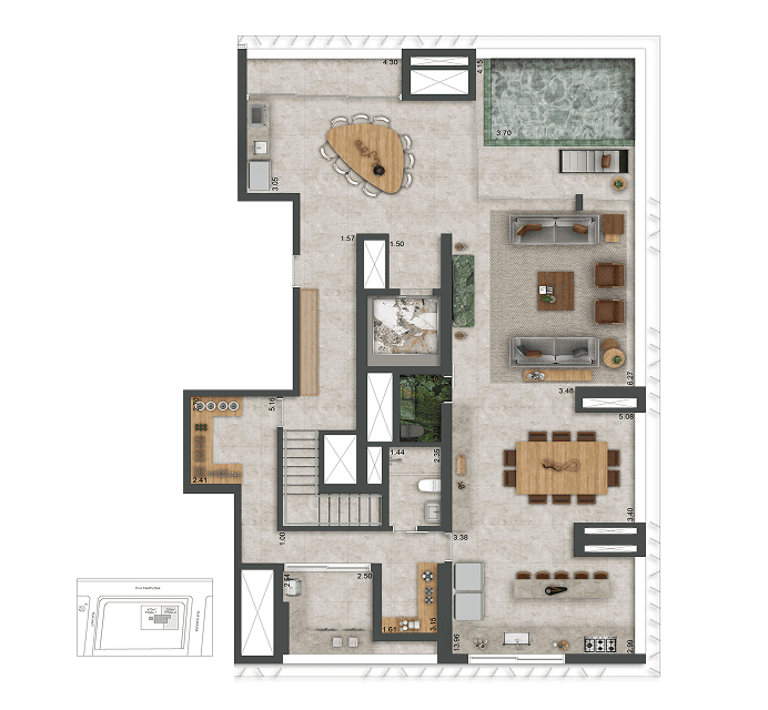 Futuro empreendimento: Autór Jardins. Incorporadora: Creta Desenvolvimento Imobiliário SPE LTDA. Projeto arquitetônico: MCAA Arquitetos. Projeto de interiores: Vivian Coser. Projeto paisagístico: Escritório Burle Marx. Design convidado: Zanini de Zanine. O projeto encontra-se aprovado conforme Processo Administrativo nº 34847-23-SP-ALV. SEI: 1020.2025/0000834-6. O empreendimento só será comercializado após o registro do Memorial de Incorporação no Cartório de Registro de Imóveis competente. Os acabamentos, os mobiliários, os eletrodomésticos e os demais itens do apartamento decorado e das perspectivas não fazem parte do Memorial Descritivo. Para detalhamento dos equipamentos e dos acabamentos que fazem parte desse empreendimento, consulte o Memorial Descritivo. A vegetação que compõe o paisagismo retratado nas perspectivas é meramente ilustrativa e apresenta porte adulto de referência. Na entrega do empreendimento, essa vegetação poderá apresentar diferenças de tamanho e porte, mas estará de acordo com o projeto paisagístico e as aprovações ambientais. As vistas apresentadas nas imagens são meramente elucidativas, não sendo as fotografias exatas do local. Futura intermediação: Bem Imobiliária: Av. Dr. Cardoso de Melo, 1.470, Vila Olímpia, São Paulo/SP. Tel.: (11) 3847-1333. Creci: 20.197-J.